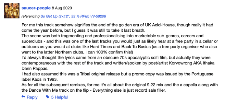 One discogs comment on ‘So Get Up’ captures many of these threads from an outsider’s perspective: