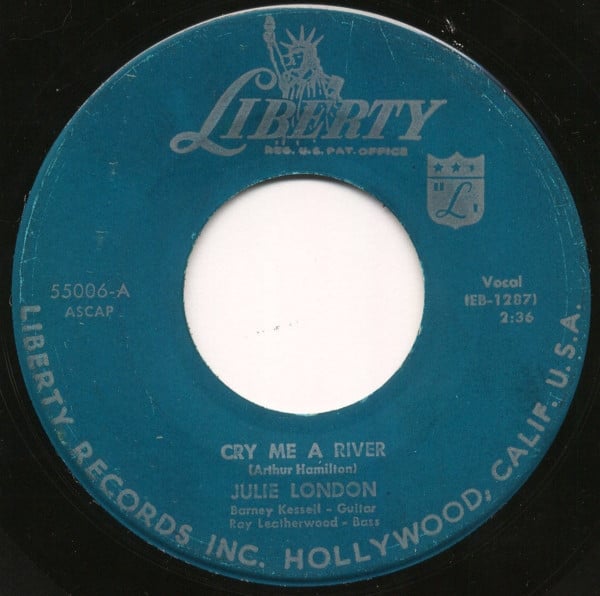 Another stand-in for a whole submerged genre, or collection of genres, otherwise unrepresented on this list, but on which I have previously pontificated using the coinage “adult pop,” in order to distinguish it from the teen-craze pop that is more frequently valorized from the era. I have a grudge against the widespread usage of the phrase “traditional pop” to silo off all pre-rock traditions, partly because it collapses valuable distinctions that were very much alive for the people who listened to, danced to, and played music at the time, and partly because the further into the past the Boomer irruption recedes, the less old-fashioned pre-rock music sounds; or anyway it merely sounds differently old-fashioned to the rebel rock that supposedly usurped it. The spare, dry sound of “Cry Me a River” is as sleekly ultramodern as any Sun, Chess, or Blue Note side of the day: just Barney Kessel’s sprinkled guitar and Ray Leatherwood’s slippery bass to back up London’s cool, understated delivery of Arthur Hamilton’s elegantly incisive lyric, gesturing towards beloved Tin Pan Alley tradition with the “too plebeian/through with me and” rhyme in the bridge but otherwise as plainspoken and direct as the urban blues from which the torch-song tradition was derived. It was written for jazz goddess Ella Fitzgerald to sing in Pete Kelly’s Blues but got cut by director Jack Webb; then it was offered to chipper starlet Peggy King, but middlebrow arbiter Mitch Miller vetoed it because “plebeian” was too fancy-schmancy. Finally, Webb’s wife, actress Julie London, was urged to sing it by Nat Cole-manqué Bobby Troup, who produced the session: it became a hit and formed the centerpiece of her debut album, a quintessential artifact of the early Playboy era, in which bachelor-pad sophistication, adult sexiness, and feminine autonomy could still conceivably coexist — before long, London divorced Webb and married Troup. Their collaborations, with him devising exquisite miniature settings for her limited but sensual voice, continued as a parade of intelligently sequenced albums; and when eventually Liberty assigned her other producers, she even returned occasionally to the lower reaches of the pop chart. Eventually, of course, the Sixties took their terrible toll on all adult pop, sacralizing adolescent tastes as the eternal lynchpin of the New.; her final singles were bubblegum pop covers, an indignity to which the cool, unflappable narrator of “Cry Me a River” would never have stooped.
