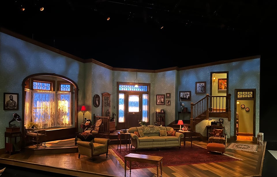 After skimming the play’s Wikipedia article the next day, I bought a ticket, choosing an October date in order to satisfy the see-one-show-a-month remit of this series. I was a little chagrined that the ticket cost more than twice as much as it had to see Carmen at the Lyric Opera, but once I made the hour-and-a-half train and bus journey from Rogers Park to the University of Chicago and found my seat in the Court Theatre, I was immediately reconciled to it. The Lyric is a vast space, and I’d been way up on the top balcony, peering down to glimpse only the broadest gestures of the ballet; the Court is small and intimate, the actors only feet away from the audience, with no curtain: as the crowd found our seats, the single set was already there on stage, a middle-class living room in 1922, period jazz playing on the sound system (I know I heard Louis Armstrong, Johnny Dodds, and Sidney Bechet, although I didn’t immediately recognize the records) while we reviewed the program via QR code on our phones.