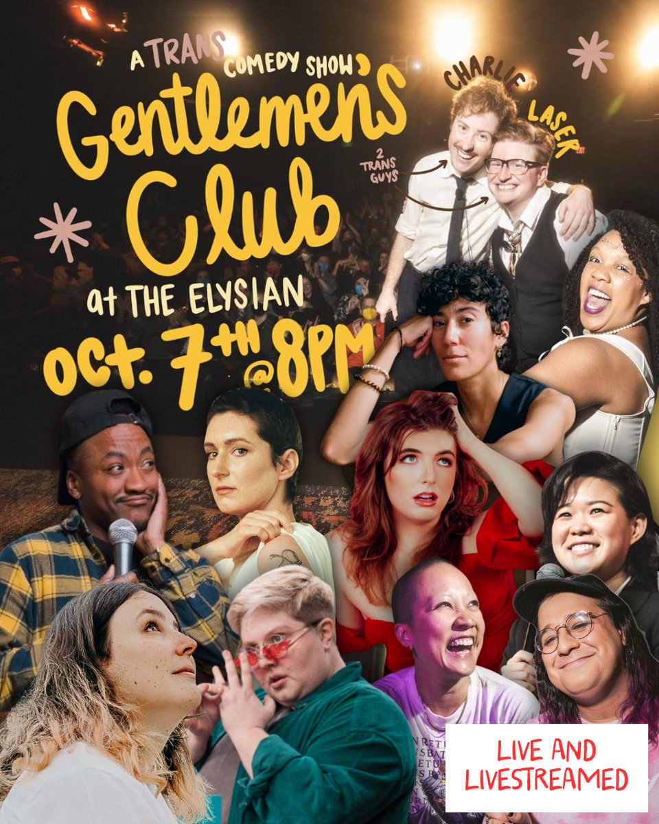 Livestream or in LA tonight (watch for 2 weeks with virtual ticket, or see us in person!): gentleman’s club - as seen at last years Joy who lived festival! Comedy, improv, friendliness ❤️🆒🆒🏳️🌈