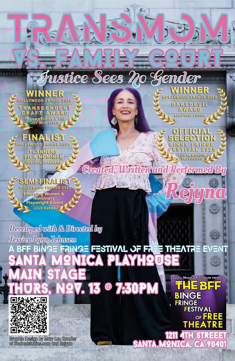 A free trans theater event on the west side— Trans Mom vs Family Court (winner of the JWL transcendent craft award) is going up at Binge Fringe at Santa Monica Playhouse, for completely free on Nov 13. Reserve your tickets here!