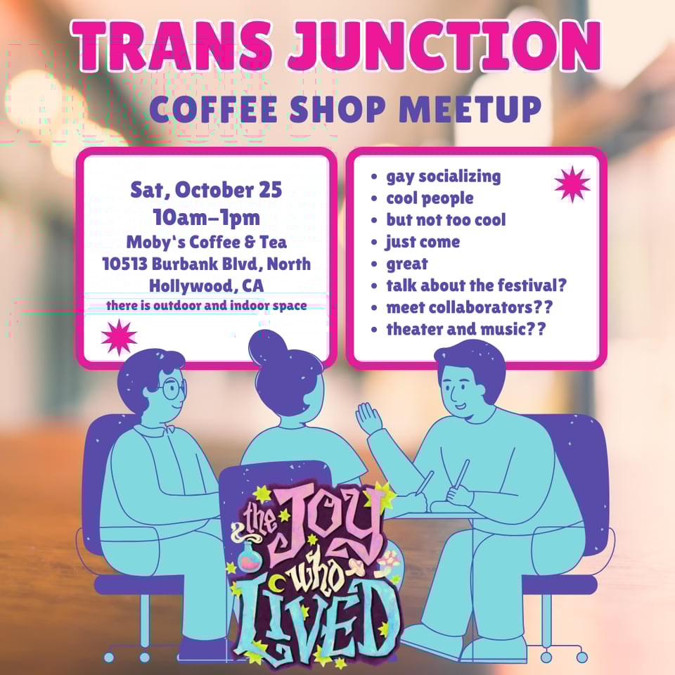 The Joy Who Lived festival starts in March next year, but we’re opening our call for shows/actors/participants in just a few weeks. Got questions? Wanna meet other people and find out about the festival? Just like to hang? Join us this Saturday for a chill meetup in North Hollywood! Info/rsvp here (you can also just show up)