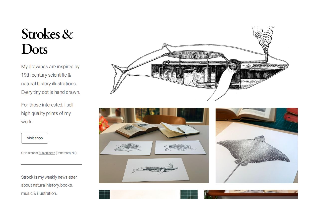 My drawings are inspired by 19th century natural history illustrations. And are made of dots. A lot of dots.