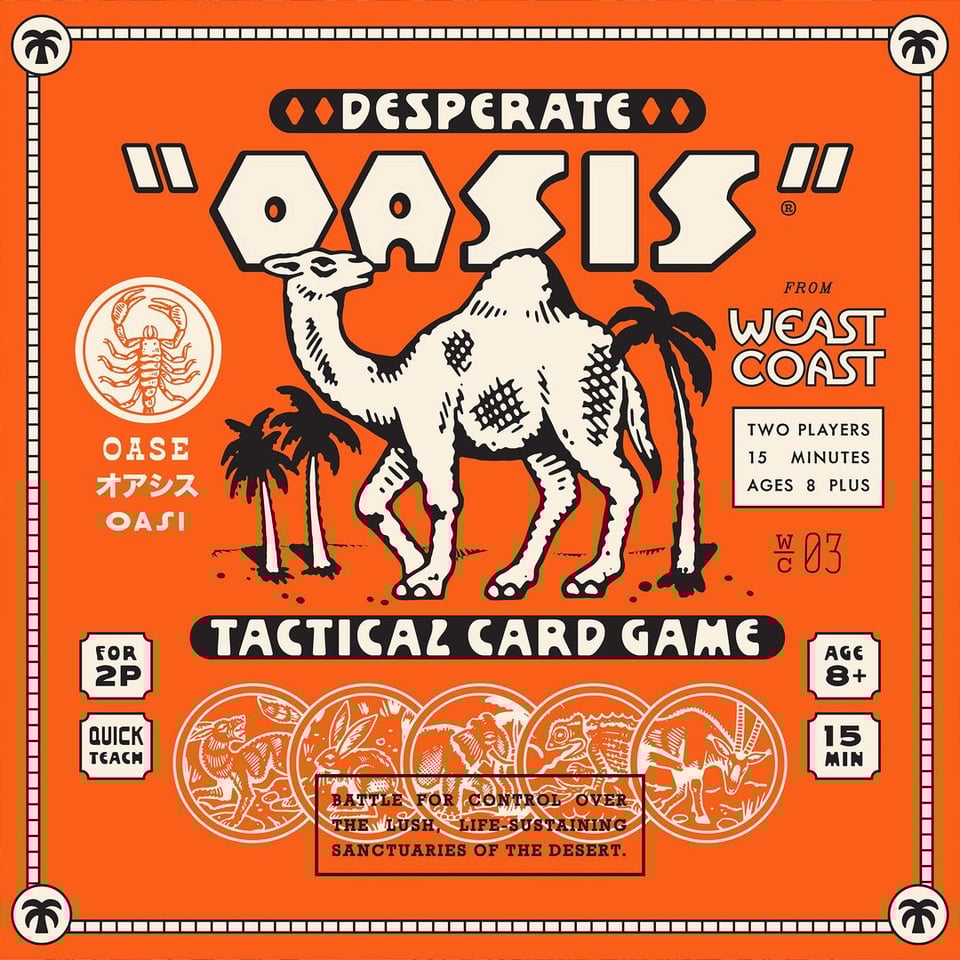 Weast Coast and Young Jerks, the team behind Snakes of Wrath, announces another game: Desperate Oasis. This time it’s a small box card game with a big table presence. With wonderful artwork by Brett Stenson. Launching in 2024 (probably).