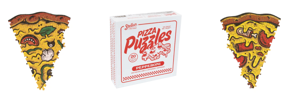 Pizza Puzzles bring delicious art and a fun jigsaw puzzle experience to your table. These pizzas are silly and fun to look at, but more importantly, they’re puzzles you can build with your friends and family.