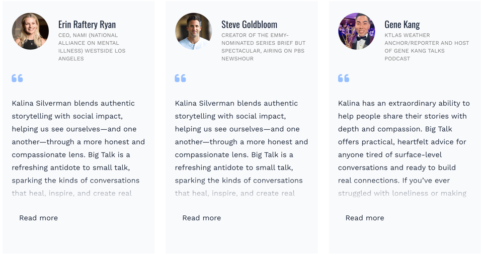 If you’ve ever wanted to support my work — or if you believe, like I do, that the world needs more meaningful connection — please consider preordering the Big Talk Book today. Every preorder helps bring this message into the world.