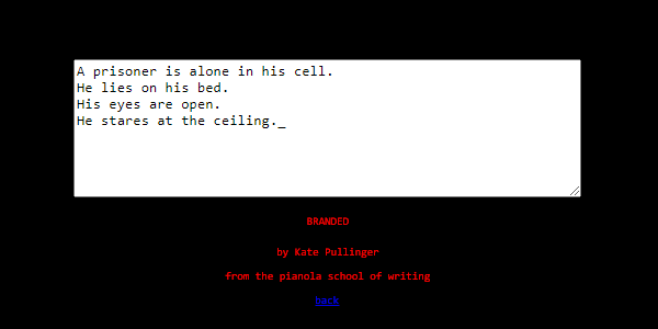 For the past couple of years I’ve been assisting the construction of an archive of my digital work. Led by the Bekker scholar Dr Agnieszka Przybyszewska from the University of Lodz, built by my frequent collaborator Chris Joseph, with intro films created by Rachel Pownall, the archive is ready to launch. It spans my earliest works, like ‘Branded: the Typing Version’ a tiny html story I hand-coded myself with a borrowed piece of javascript back in 2002, to the most recent, my smartphone ghost story, ‘Breathe’.