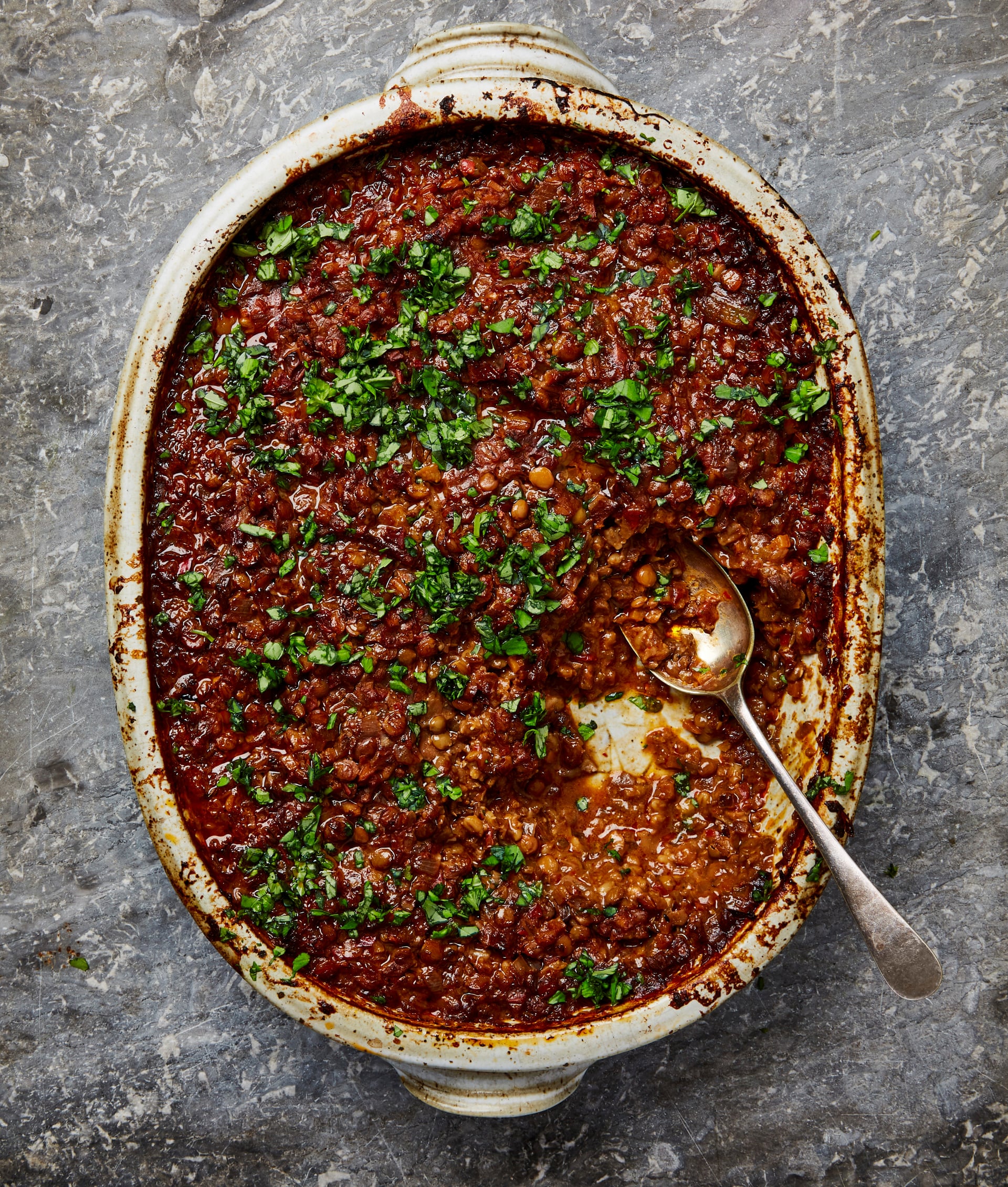 We went to Iain and Jenny's for New Year's and at around 10:30 they pulled out a late second dinner for us all: a meat-based chili and a vegan baked ragu. Reader: I ate three bowls of it. It's an Ottolenghi recipe, which means there are lots of ingredients, but trust me, it's worth it. That said, I haven't made it myself yet, but Cass has made it three times so far this month and if that isn't a vote of confidence I don't know what is. She has switched in chickpeas for the lentils and left out a few ingredients and apparently it still worked out well.