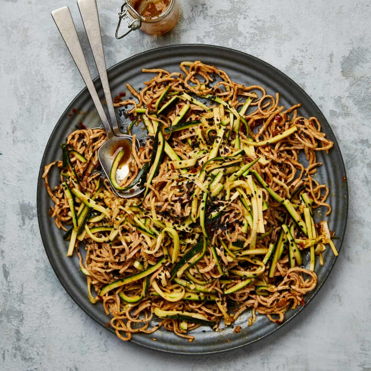 We really enjoyed these Sesame Noodles with Smacked Courgette, and not just because you get to make all sorts of jokes about smacking courgettes. In fact, I would double or triple the number of courgettes you smack to make this – I thought it needed a higher ratio of vegetables. I didn’t have black vinegar, I used rice instead, and it wasn’t a problem.