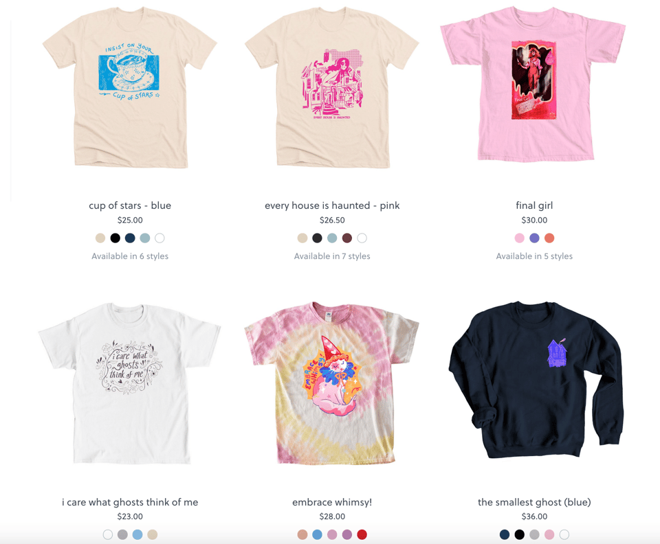 On my Bonfire shop, you can find t-shirts, sweatshirts, mugs, and tote bags of various designs!