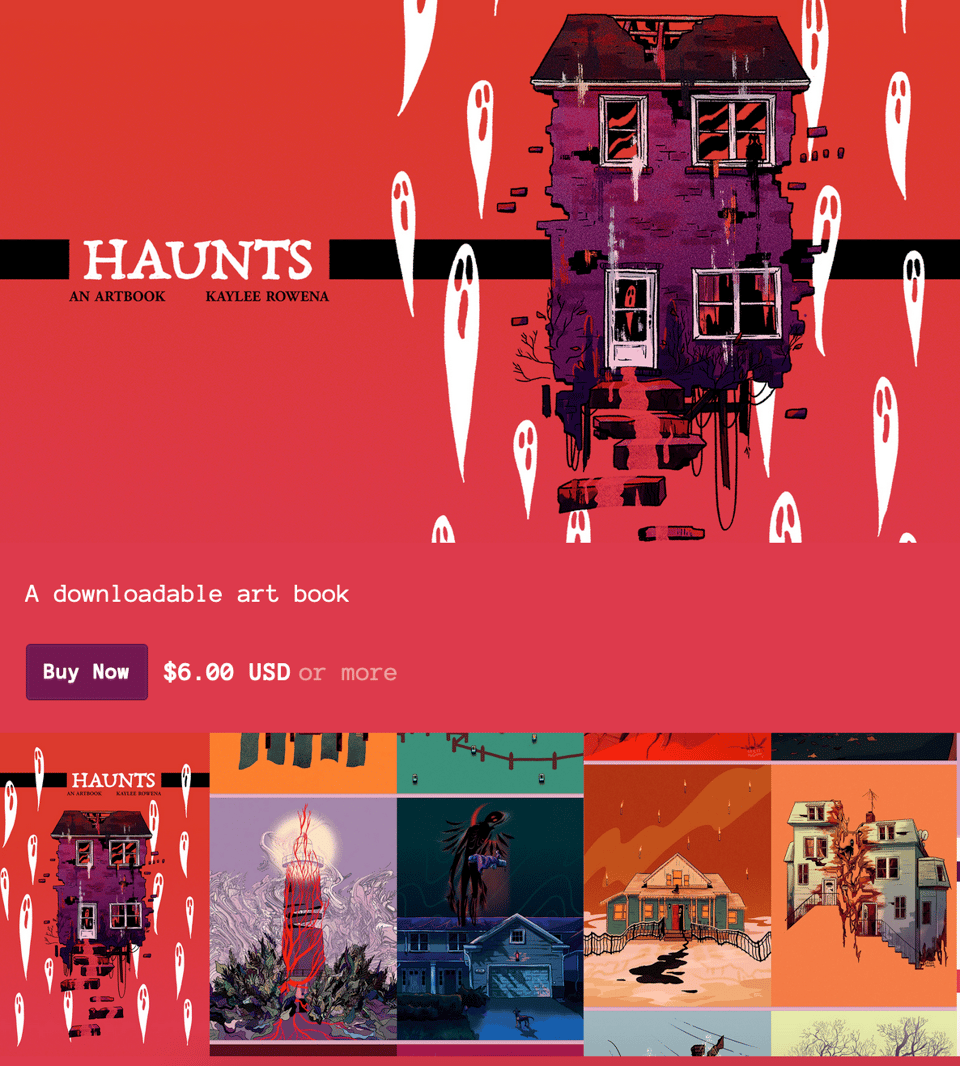 i finally remembered to toss the pdf of haunts onto my itch.io page, so if you missed out on the print version, you can now get all 50+ pages of haunted house art (and the 6-page essay on haunted houses) on your very own computer!