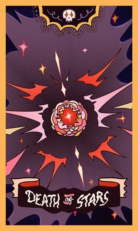 i'm posting cards as i draw them on my patreon for haunting tier and up! i have 6 finished so far and 44 total planned right now. i'll probably be running a kickstarter to fund making the deck โ i'm not sure exactly when, but sometime between a month and a year from now. i'll keep you guys updated with more specifics once i've figured them out!