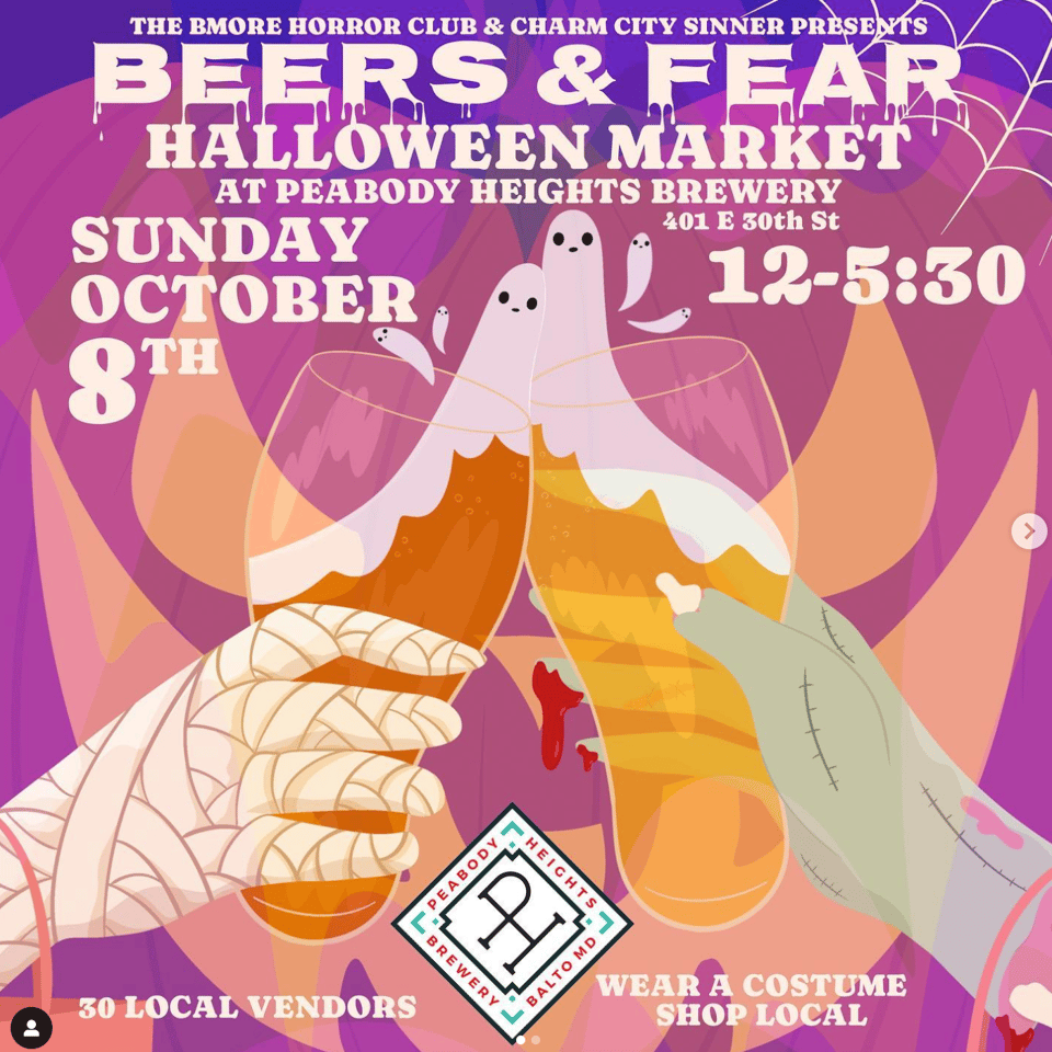 the baltimore horror club's beers & fears halloween market at peabody heights brewery is a few weeks away! i'll be tabling there with lots of spooky halloween goodies.