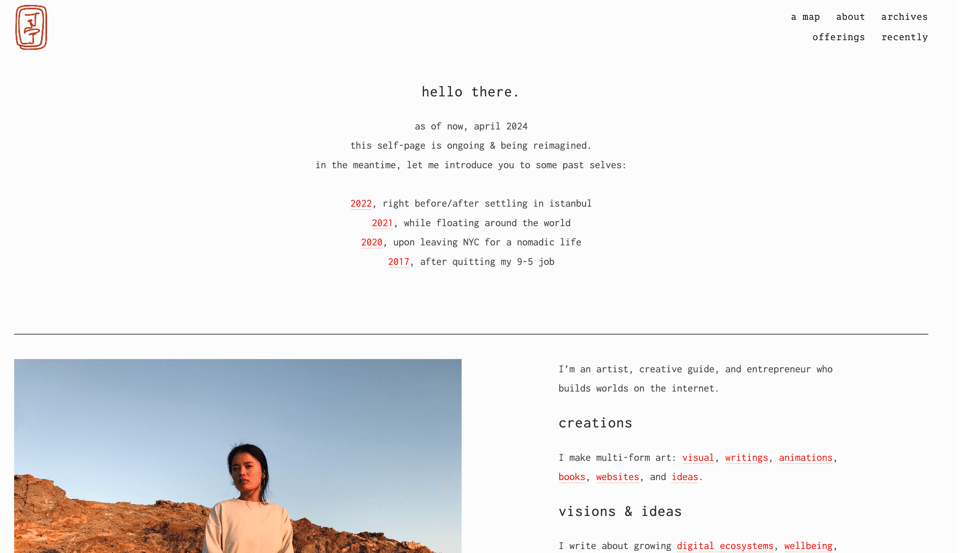 as I'm slowly pruning and renovating my website-garden, page by page, I decided to look at my about page (probably the page I was avoiding the most) -- because it's such a time capsule of who I was in 2021/2022. and looking at a past selves is... confronting, to say the least?