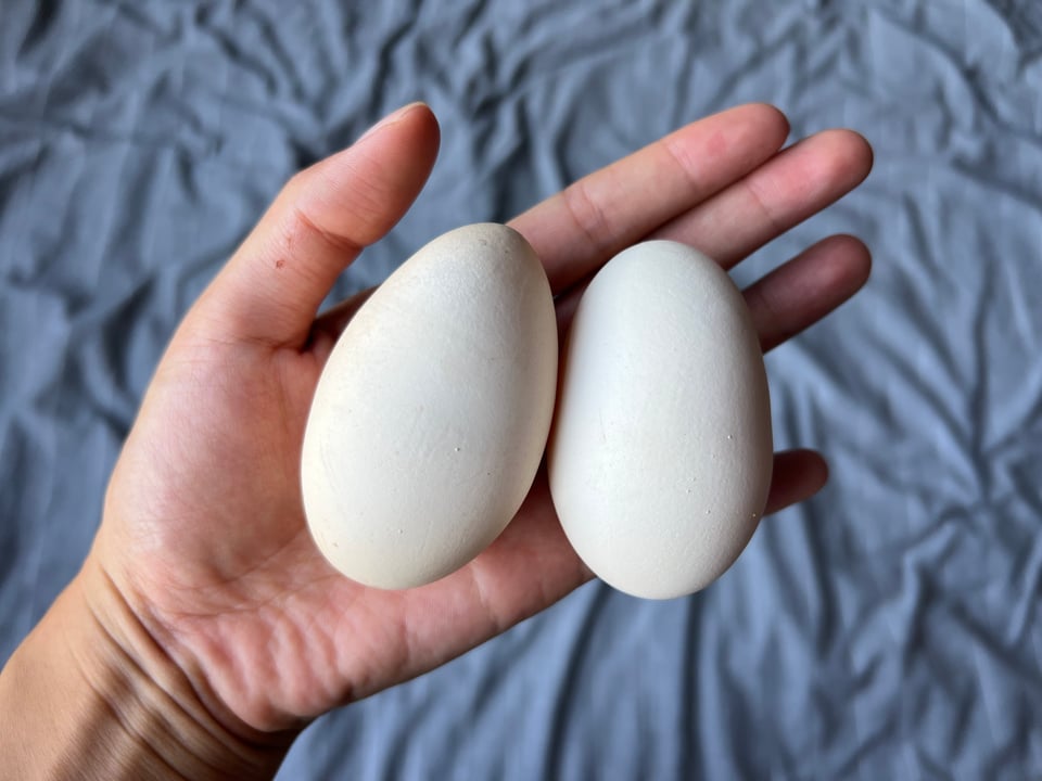 sending you two eggs from the village (gifted to us from our airbnb host). my mother thought these were stones.