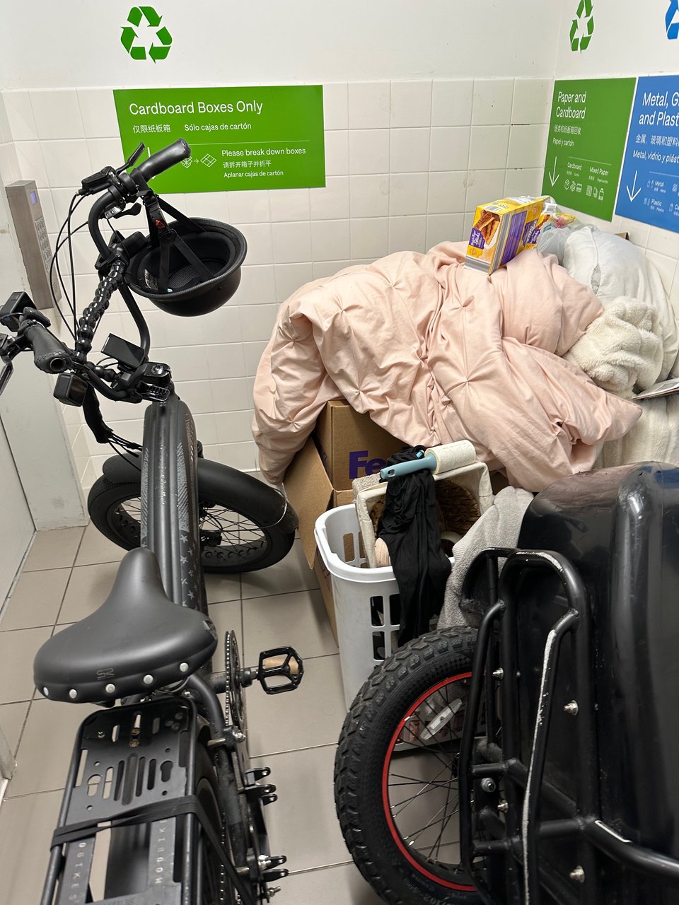 I have to go through the recycling room to use the freight elevator everyday. So, when I take out my own recycling I make sure to always break down my boxes and put my trash in the proper chute or bin to keep the way clear. Our neighbors aren’t always so good at this, and I find myself also doing their work, which feels like a metaphor for how the world works now. Or maybe I am getting old.