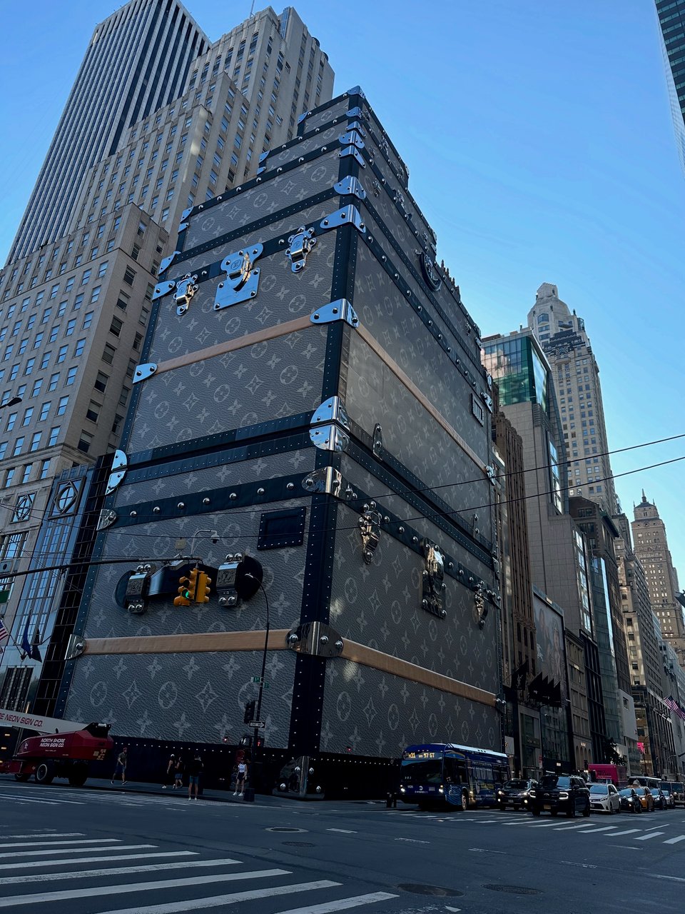 When we were riding down 57th to Park Avenue on Saturday for Summer Streets I noticed the Louis Vuitton Building. I think I saw references to it on social media, but I hadn’t made my way this far down 57th for a while. It is a facade while they are building the new building, but it is kind of surreal and strange to behold in this old school commercial section of the street we live on.