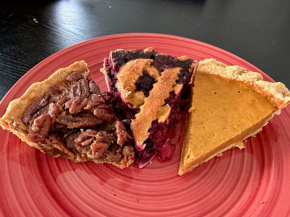 We repeated what we did last year for Thanksgiving—we ate all pie. Audrey got a pecan, berry, and of course a pumpkin pie. I think there is just a single slice of berry left for Audrey as I write this, and we successfully ate it all. It really is a much simpler formula for Thanksgiving. We were fortunate to not have to travel this year, just staying put in the city, and what better way to celebrate than just eating pie. Oh, and we did thanksgiving chicken sandwiches from a sandwich place today—which is another great tradition.