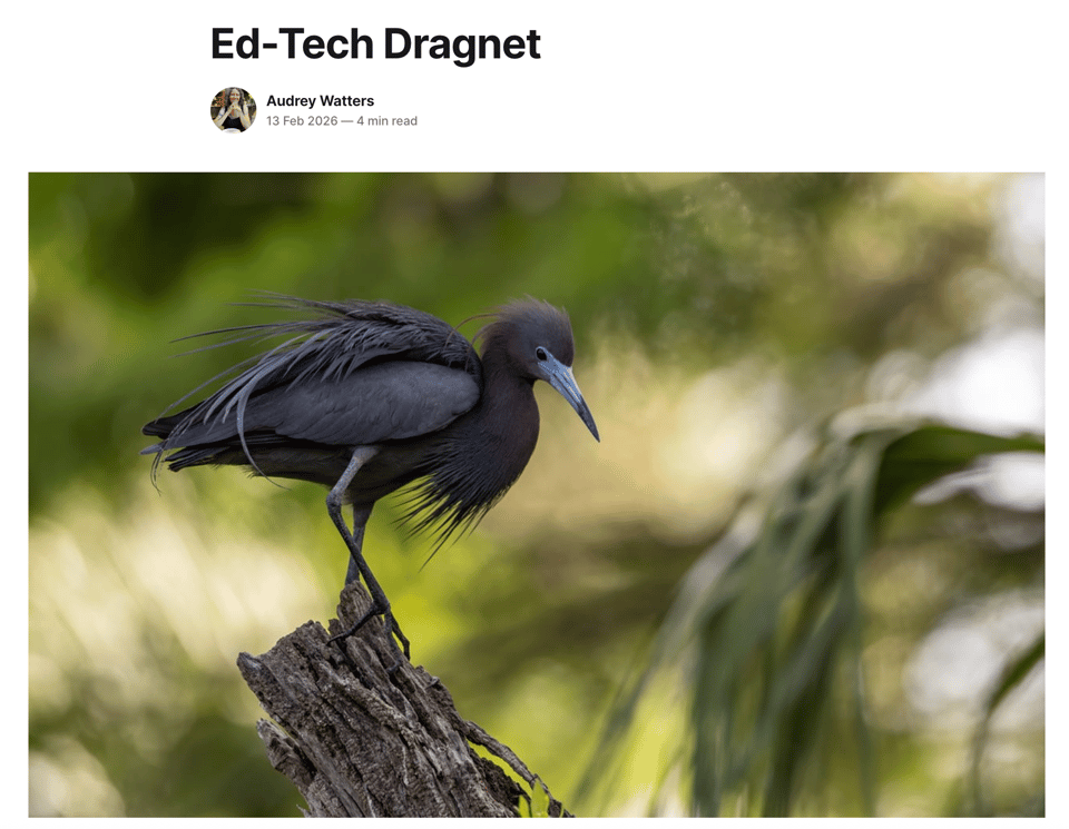 Audrey had a great newsletter this week where she said, “You cannot build a home – physical or intellectual – that is safe and secure if the foundation is rotten. The foundation of these fields -- cognitive science, psychology, artificial intelligence, computing, educational technology -- is rotten.” Something that has stuck with me all week as I think about Internet technology.