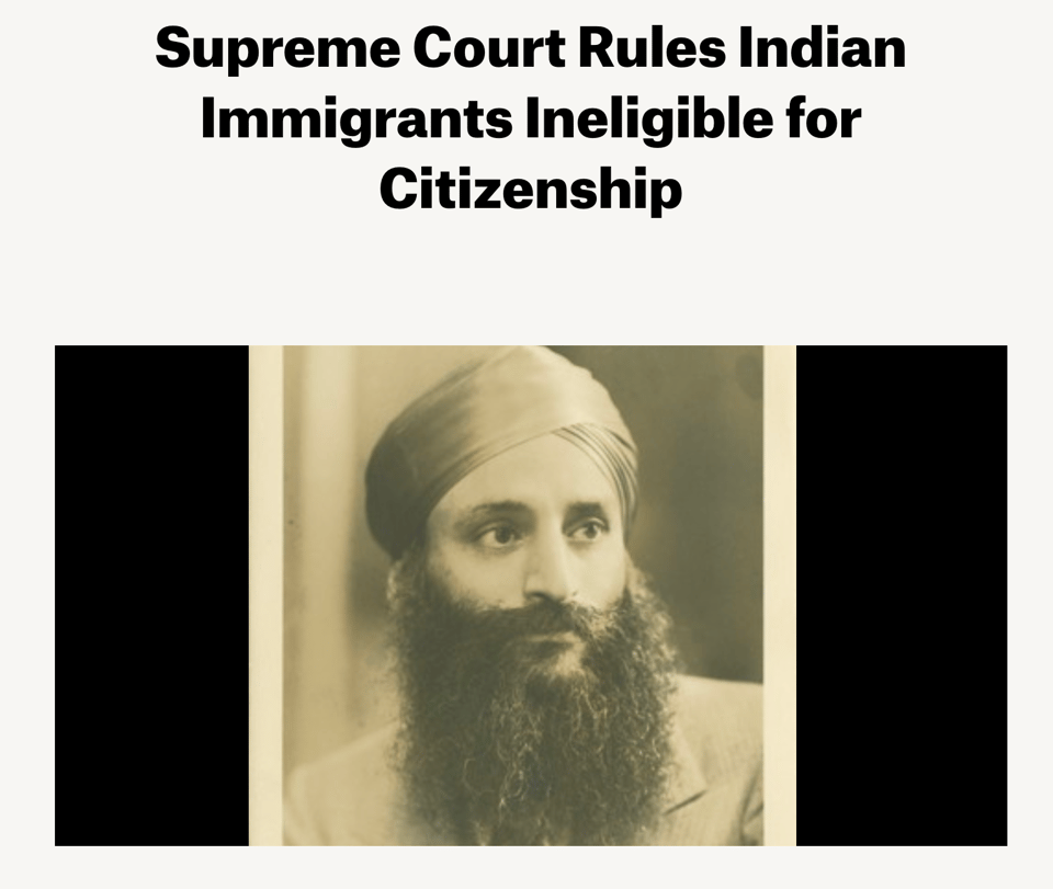 I read about how the Supreme Court had ruled that East Indians were ineligible for citizenship in the United States back in 1923. I feel it is important to be aware of, and regularly talk about this historical moments, especially as we continue to dance with such thoughts as a country. Looking at our Supreme Court right now you can see how in other times we’ve had some pretty messed up views of who a citizen of the United States should or shouldn’t be, demonstrating why we need to regularly tell stories and talk about our history, not bury it.