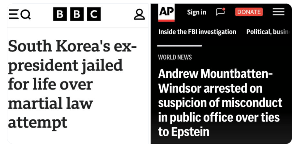 The news of President Yoon Suk Yeol being sentenced to a life sentence after he declared martial law and threatened to unravel decades of hard-won democracy, and the former Prince Andrew being held accountable for his exploitation of women alongside Epstein and Trump made me feel a little less crazy this week. I don’t have any delusions about how conservatives in this country will cling to power, but at least other countries still have a moral compass in these times, despite the United States losing its fucking mind.