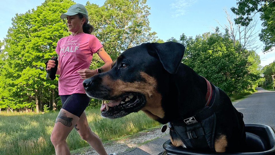 The moment we parked the car in Maine we unloaded the bike and hit the road to support Audrey with one of her runs. We stayed off the main road and made our way down one of the side roads, riding past wildlife and the locals. Maine has some winding and hilly roads with beautiful meadows and forests to enjoy as we casually rolled our way around the countryside. Audrey was doing most of the work while Poppy and I slowly peddled to keep pace with her as we soaked up the cool weather and beautiful countryside of Blue Hill.