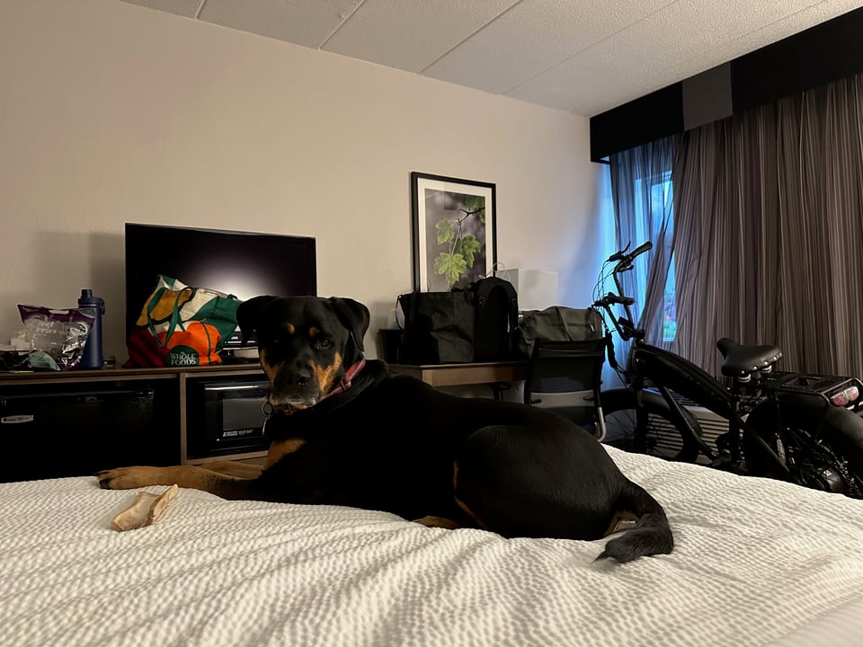We headed up to Blue Hill, Maine this week to see family. I headed to midtown to pick up a truck, and we gathered up our luggage, Poppy, and then loaded up the bike and sidecar in the truck, and we hit the road. It was weird to be driving again after over a year of not driving. It didn’t take long before it all came back to me, but it is something I’d prefer not doing for the rest of my life. We made it up to Portland, Maine before stopping for the night, then hit the road first thing after eating some donuts, making it to the family homestead by lunch.