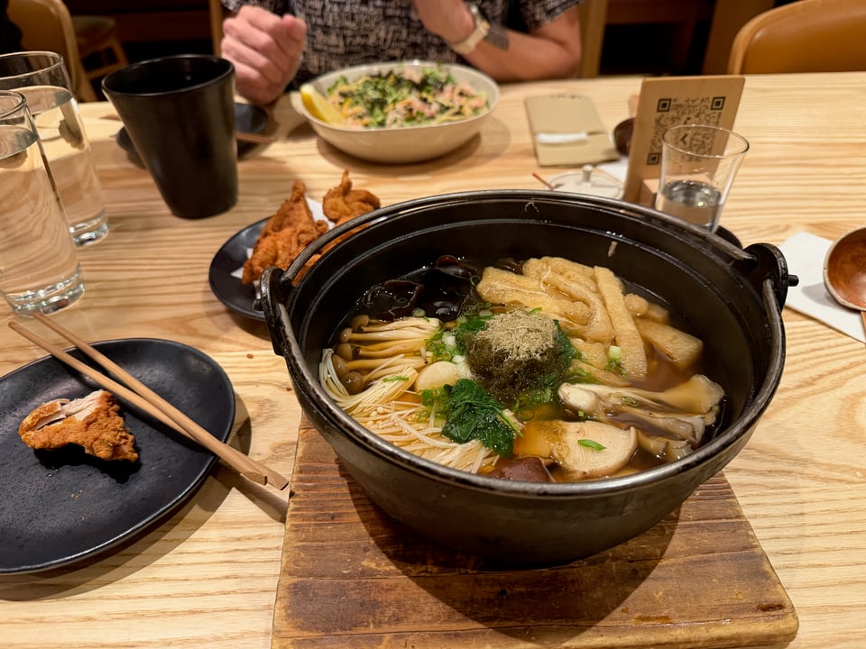 Audrey and I went for dinner at Raku in Hells Kitchen. I had an amazing seasonal mushroom udon with King Oyster, Brown Shimeji, Enoki, Shiitake, Wood Ear, and Maitake mushrooms. The Tororo kombu seaweed and udon noodles in broth were soul nourishing, but the mushrooms reminded of just how limited chicken, beef, and pork can be. Mushrooms can take you to entirely new places with the flavors and textures, and they bring a earthy yet cosmic richness to the broth of the warming udon I had at Raku. I am so ready for winter now!