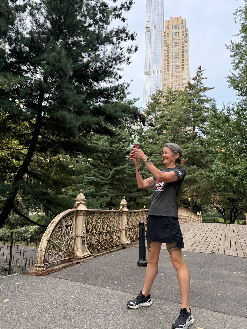 Every morning we walk to Central Park. Poppy can be off leash, and we make sure she gets a good hour long walk. It is something that has become a magical ritual. After we cross a bridge, Audrey has been taking the same picture of Poppy and the park every day since we moved here. I have made it a habit to take pictures of her taking the picture, producing some pretty good shots this week.