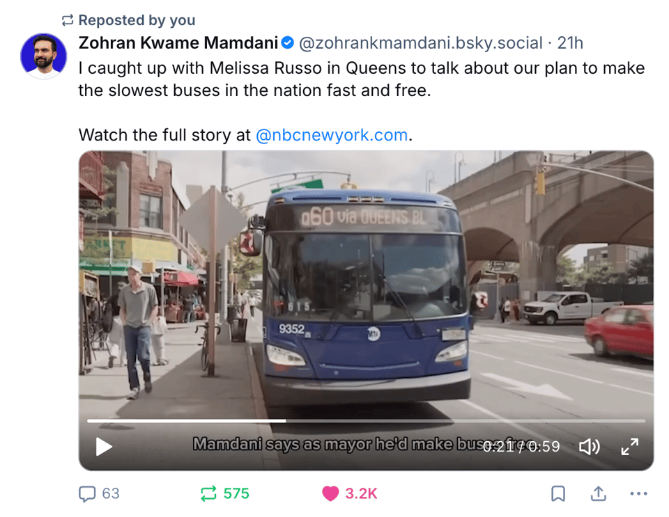 One of the things that Zohran Mamdani has been campaigning on is free busing. Something I am 100% behind in any community. It should be free for anyone to step on a bus and take it wherever they need to go. This should be a default socialized aspect of our communities right alongside libraries, roads, fire department, and police. I know that there are so many people believe “we can’t afford it”, but I will never listen to that argument as a default response from any Democrat or Republican after this latest administration.