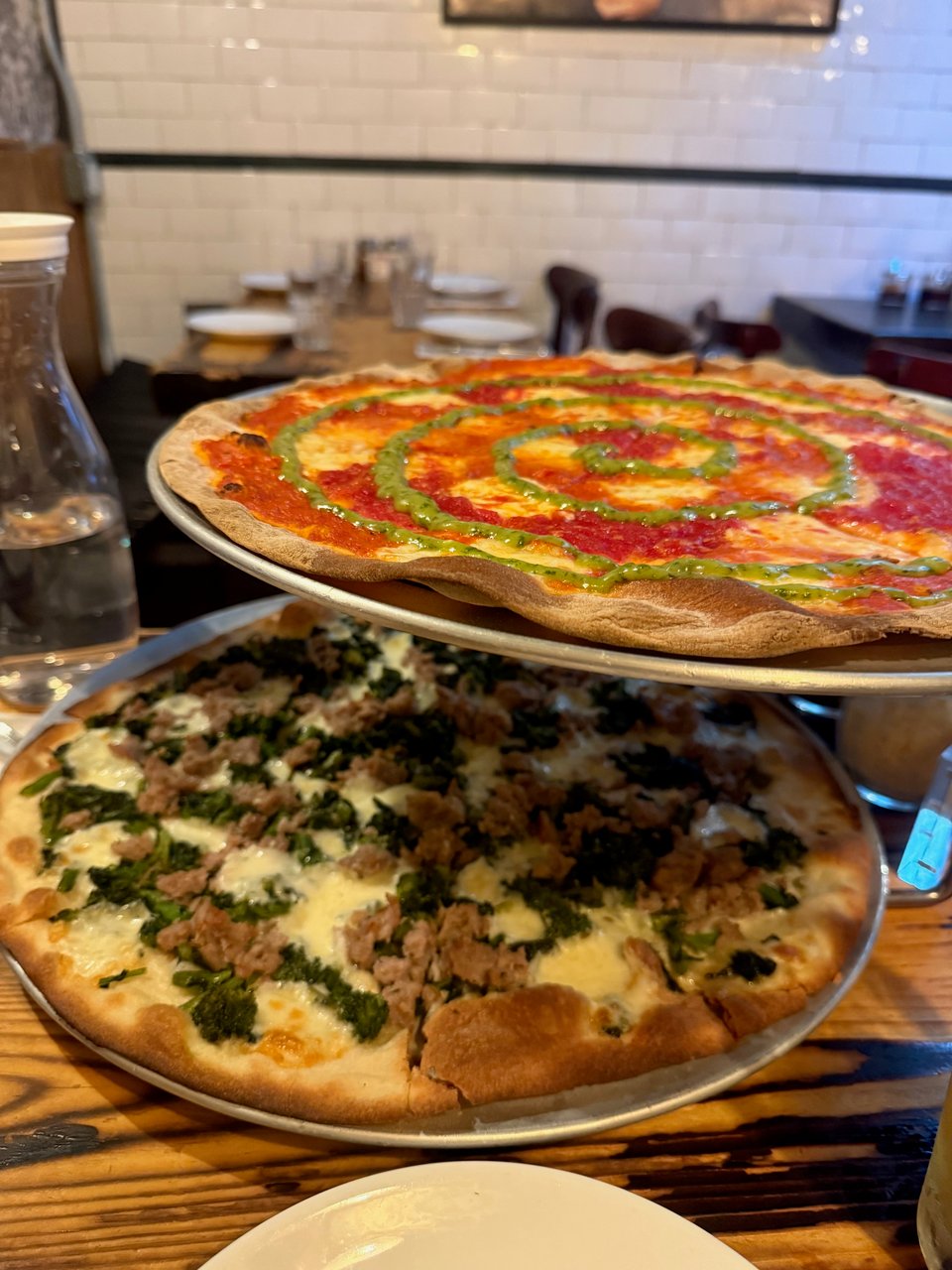 We just came back from pizza at Rubirosa, a very delicious Italian restaurant in the Nolita neighborhood in NYC. We had their Tie Dye pizza and a sausage and broccoli rabe pizza. It was a delicious thin crust pizza that was simple and flavorful—reminding us that we need to try more new pizza joints. I also had two Original Sin ciders, which were nice and dry and easy on the bubbles in the belly—which I appreciate. It was a nice place to go after Audrey ran in the Bronx 10 Miler today, but of course as soon as we get home she is hungry again.