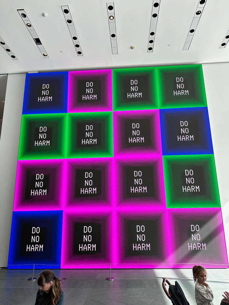 We got to the Metropolitan Museum of Art (MOMA) about 15 minutes early, to make sure my sister could see Vincent Van Gough’s Starry Night without the big crowds. While sitting in the lobby waiting there was a digital board displaying the following messages in different ways—I didn’t get to see the full thing, as we made our way into the gallery.