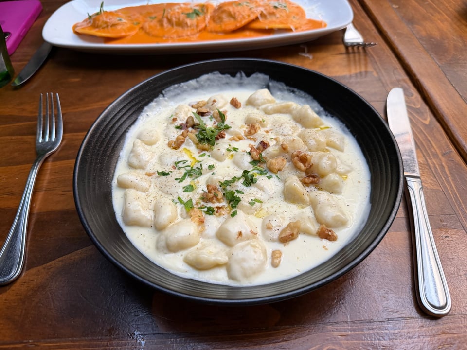Audrey and I concluded the weekend with dinner at our favorite neighborhood Italian restaurant. I had gnocchi in a gorgonzola sauce, bruschetta, and tiramisu. Audrey had a seafood ravioli—which was the special. Dinner there is always consistent and amazing, and it has that neighborhood vibe to it that keeps us coming back and sitting in the back corner.