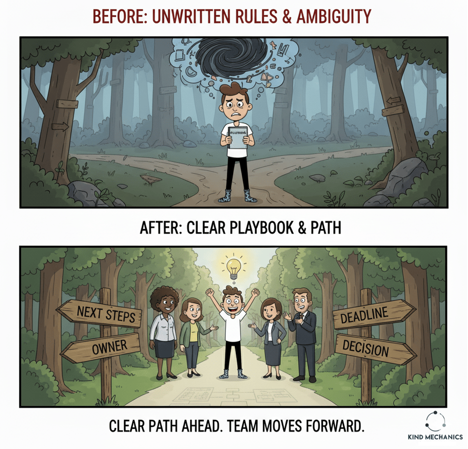 At Kind Mechanics we call this design debt: the hidden tax of unclear rules.