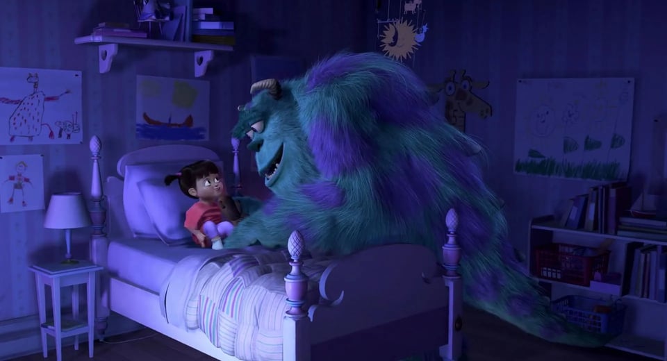 The script is actually solid, and showcases a lot of unique additions to the Monsters universe that make sense to move the story forward. It introduces an element that would later be used in DreamWorks’ Rise of the Guardians (hella underrated movie) about how humans need to believe in monsters in order to see them in the first place, which adds a layer of tension to Boo and Sulley’s reunion, as she initially no longer believes in him. The cabin scene in Monsters University shuts this down as a possibility, but it goes to show that the writers were concerned with developing this story further, taking the idea of Boo growing up seriously and taking bold swings to explain why monsters need to scare children specifically in order to power their world, as well as adding believable drama to the relationship between Boo and her monster friends.