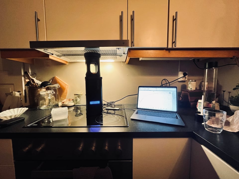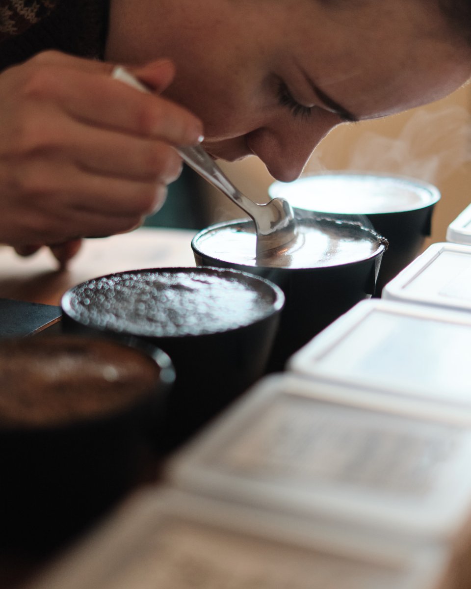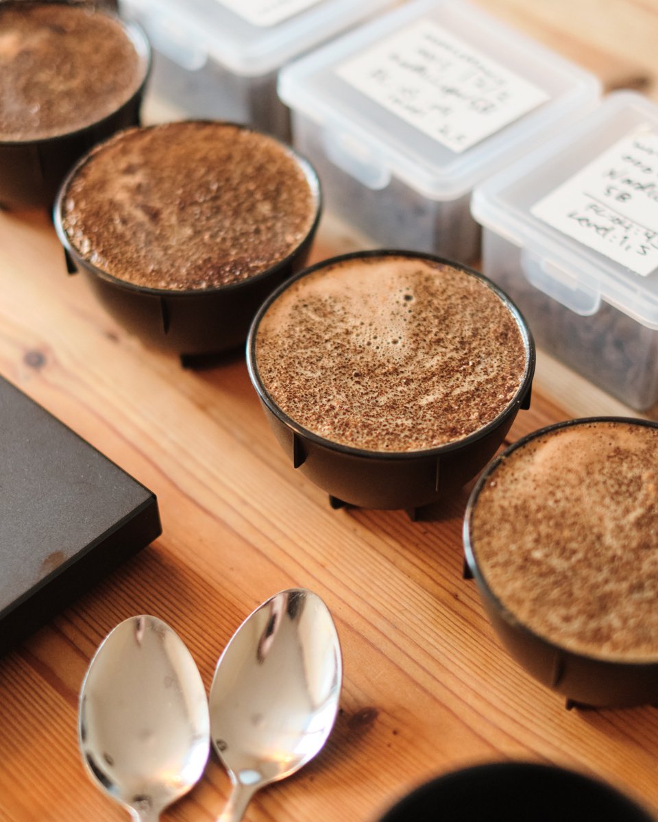 De siste dagene har gått til å teste forskjellige brenneprofiler på samme type råkaffe, og sammenlignet (med en kommersiell brenning fra samme kaffebrenneri som referanse) for å bli kjent med hva slags variabler som påvirker kaffen. I dag var første cupping, og Runi var med. Jeg ble litt overrasket over at det allerede smakte godt. Samtidig ser jeg ikke på det som noen stor seier riktig enda, da jeg ikke vet hvorfor det smaker godt. Her må det forskes mer!