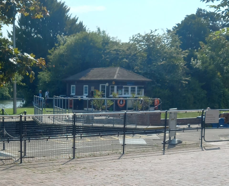 The next campsite was at Dorney Reach, just upstream of Windsor and a daunting 16 miles away. In the hopes of getting through the miles before the sun became oppressive, I packed up and left before half past seven, only to be hit with yet another bridge closure and a diversion through the streets of Bisham. This did let me pass the gates of the National Sports Centre at Bisham Abbey, but it also added miles, and I missed out on the Marlow Regatta, which seems to be a low-intensity alternative to the one in the neighbouring town.