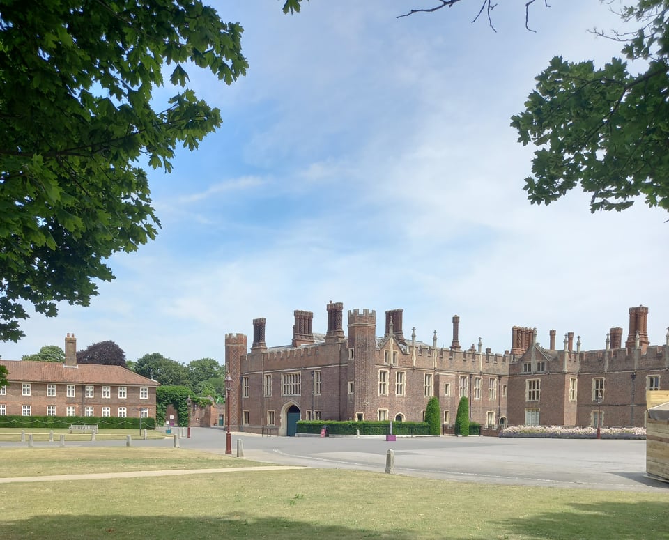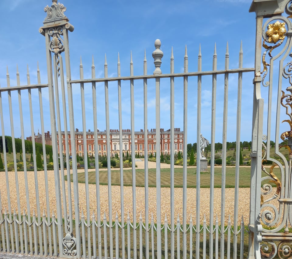 The path passed Hampton Court Palace, its gardens protected from riff-raff unwilling to pay the entry fee by not one but two metal fences, which made getting a photograph nearly impossible.