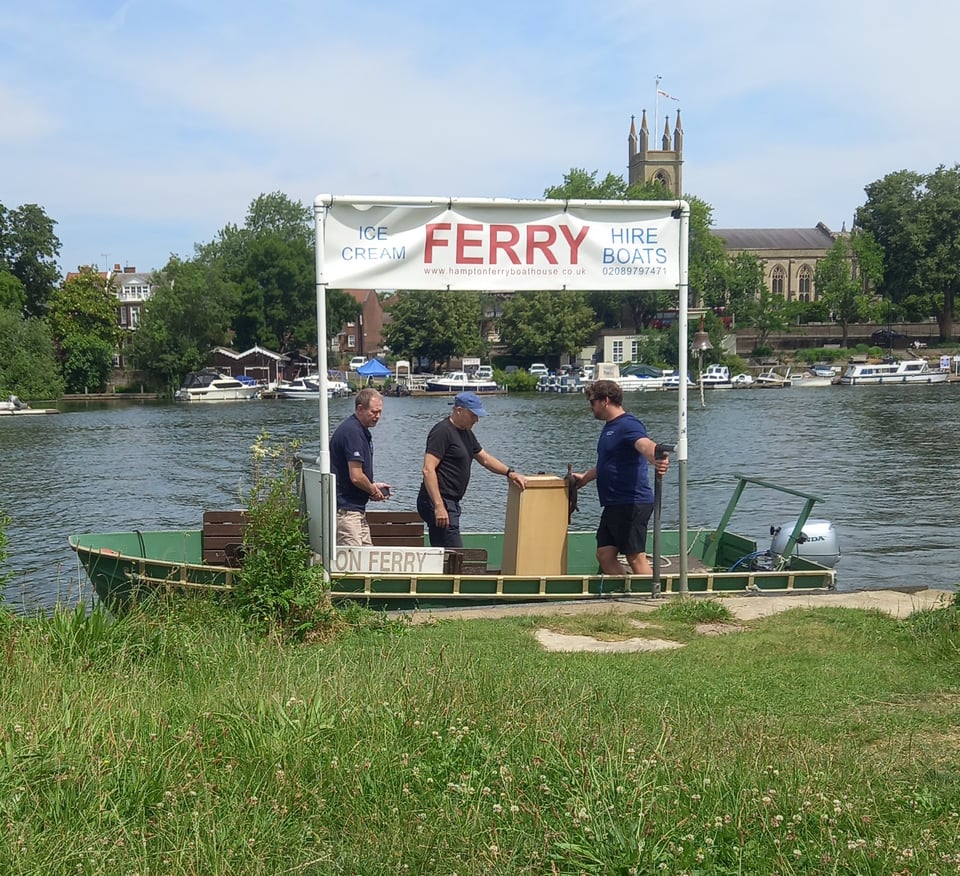 It was shaping up to be another hot day, and I was grateful that the path was mostly shaded through Walton-on-Thames and West Molesey. East Molesey was the site of another ferry crossing, the oldest on the river. I didn't take this one, but I did sit by the bank until it brought some other passengers across.