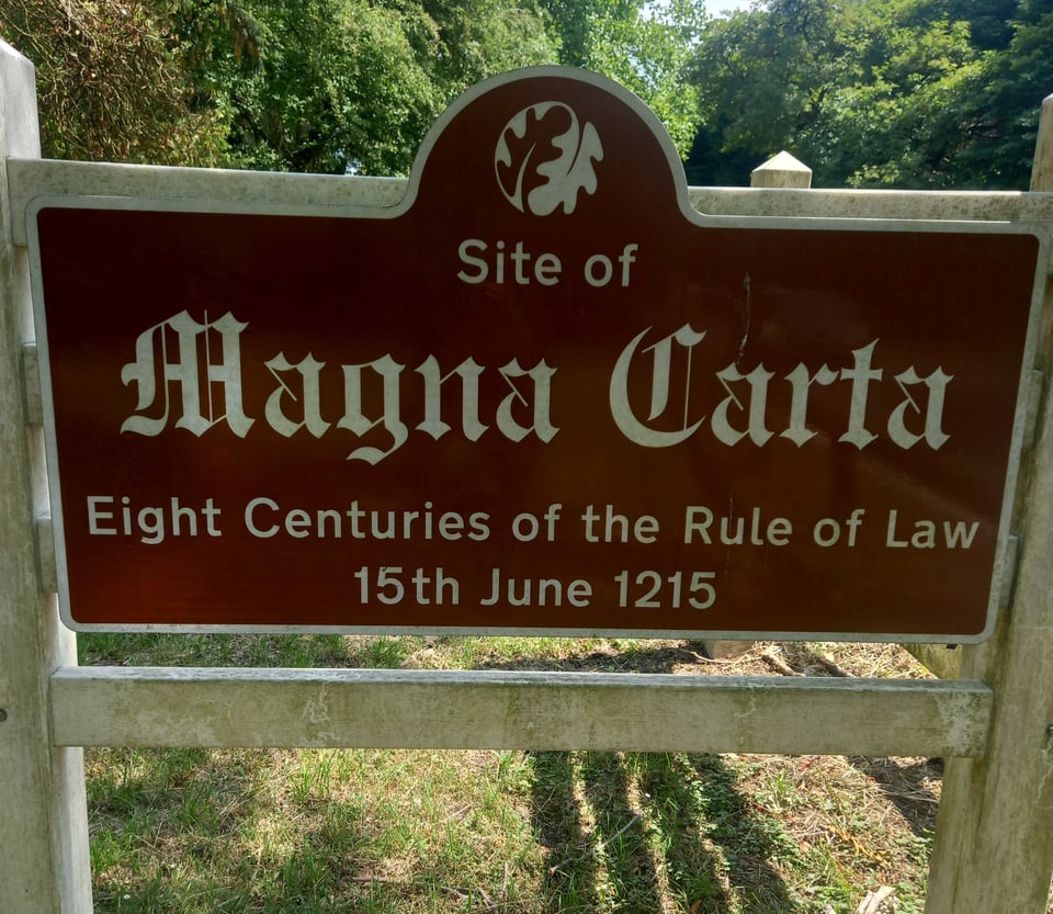 The detour enforced by those signs took me across Victoria Bridge into Datchet, a convenient place to get supplies, and then back across Albert Bridge. (Aww.) After a lunch stop at Old Windsor lock, I came to Runnymede, and discovered that I was arriving on the exact anniversary of Magna Carta.