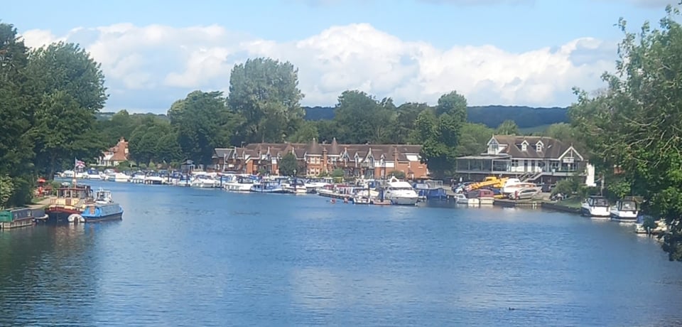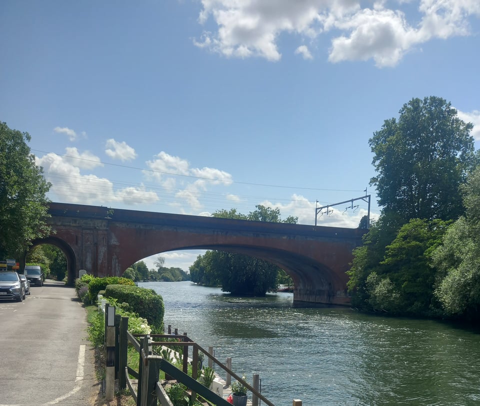 From there it was a straightforward walk into Maidenhead, the town Nick Hornby famously tried to pretend "had its own Tube station". The station is now served by Transport for London in the form of the Elizabeth Line, so perhaps he's finally technically accurate. Just before I passed under another beautiful Brunel viaduct, I had an amusing encounter with a young lady on a skateboard, who tried to avoid a collision by getting off, only to see her skateboard roll down the bank towards the river. Fortunately she was able to retrieve it before it went in.