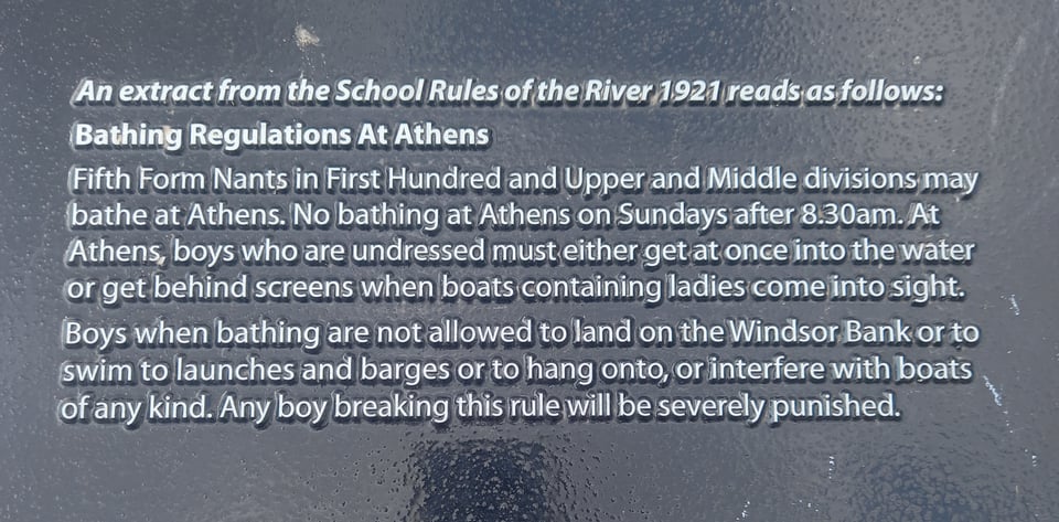 The next day started with an approach to Eton and Windsor. The one home to the boarding school of choice for future Prime Ministers, the other home to literal royalty. I passed the spot where Eton boys apparently bathed in the river, subject to stringent rules, of course.
