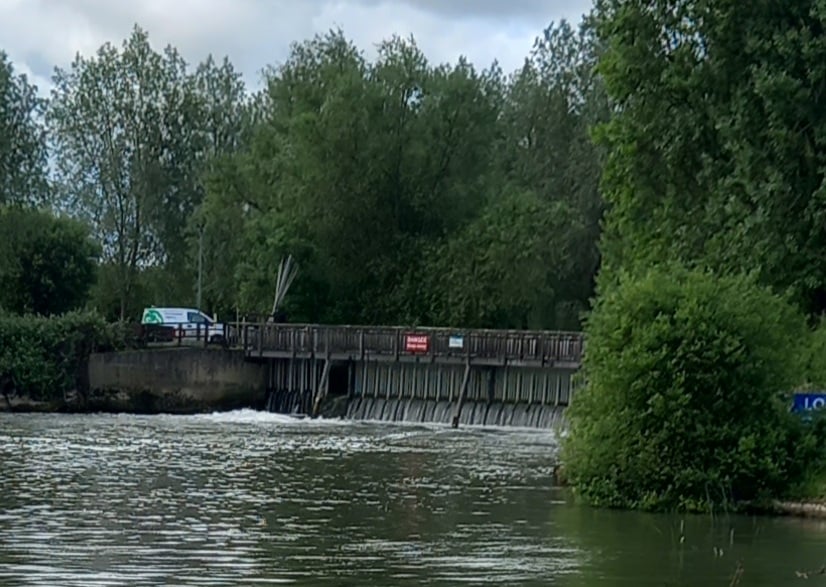 Everything was still damp at the beginning of day four, and the sky was still overcast. I tried to draw solace from the fact that it was drizzle rather than an actual downpour, and got back to the start of the trail a little before nine. When I paused at Northmoor lock for water, snack, and most importantly the chance to rest my aching feet, the lock keeper assured me it was forecast to brighten up later before offering me a Buddhist chant that was supposed to ease the ache. He also explained that, while many of the weirs along the Thames are mechanised now, he still has to manually adjust his in response to reports from upstream about the water flow.