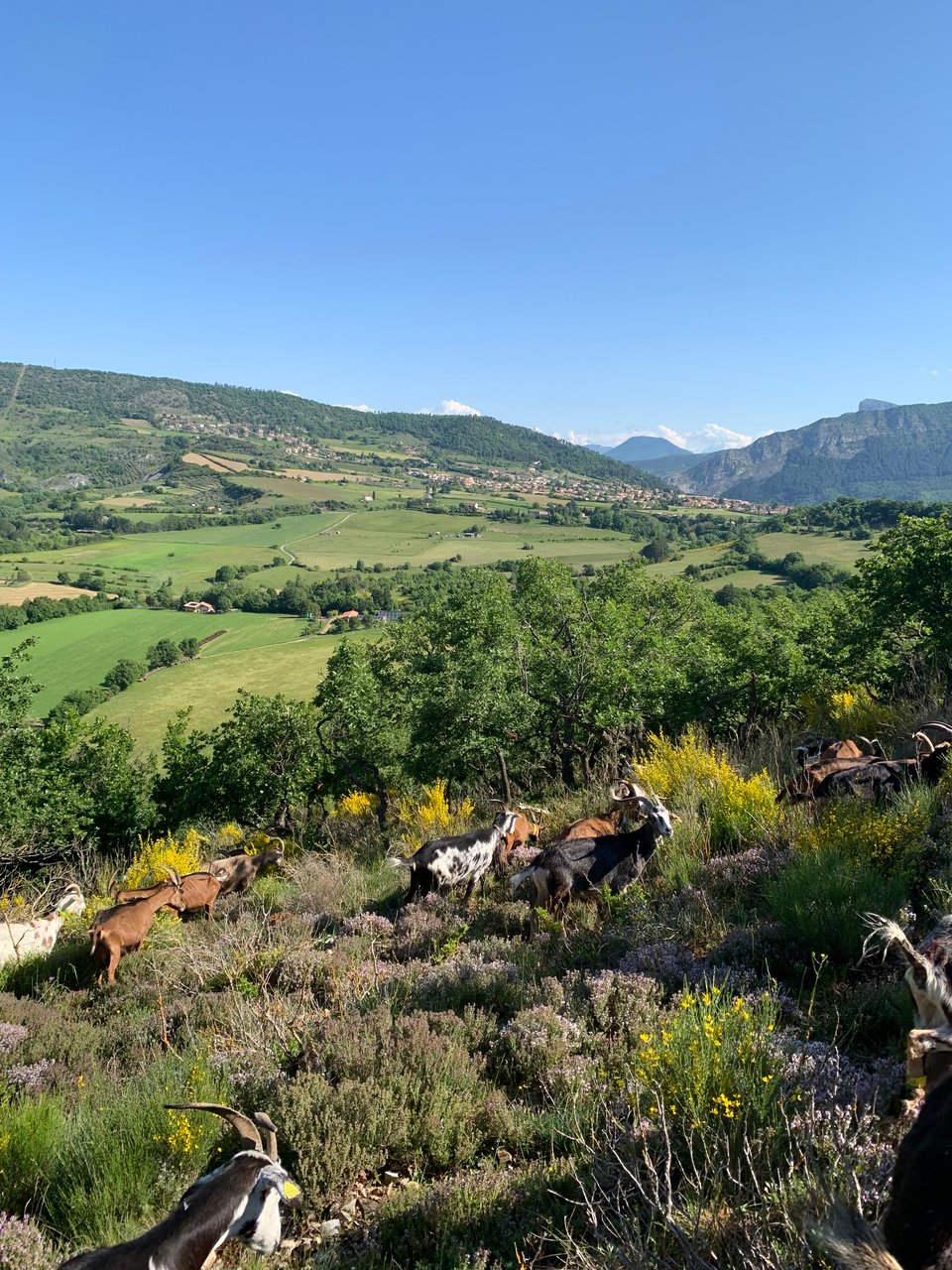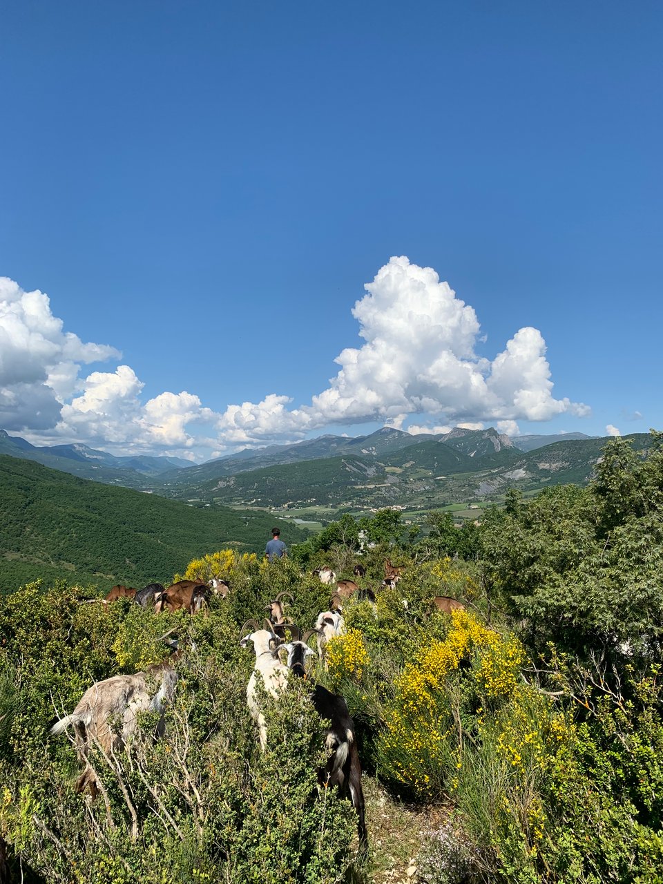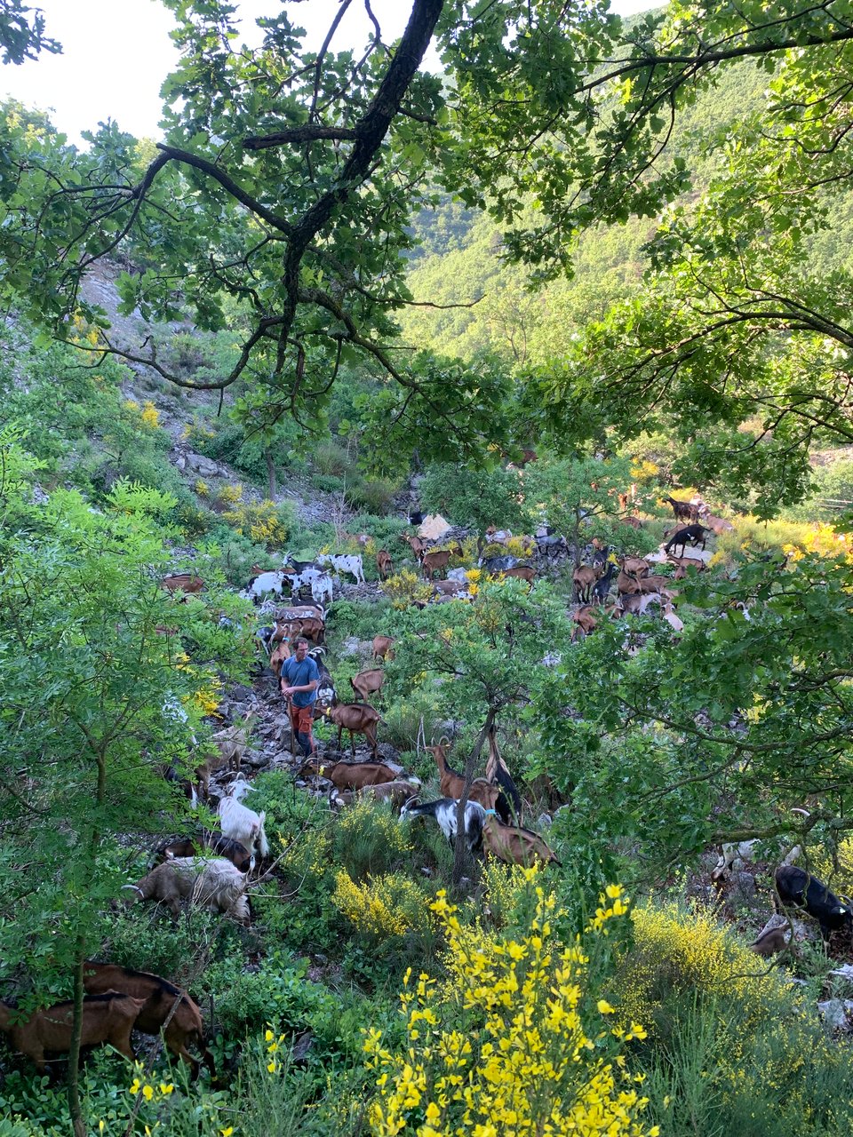 We were lucky enough to walk alongside Adrien (the herdsman) and his goats on one of their daily trips up into the mountains. The goal is simple, graze until bellies are full. Roughly 1.5 hours up, 1.5 hours down. Adrien knows the land like the back of his hand, guiding the goat’s to new pasture every couple of minutes, each more secluded, rich and diverse than the previous. As someone who frequents farmers markets, the amount of fresh herbs available for grazing was almost hard to believe. You could not escape the aroma.