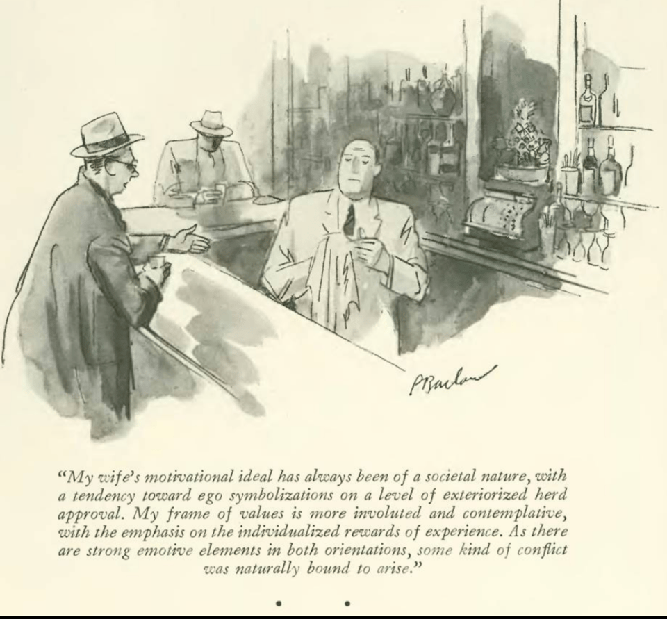 Pg. 44: Arguably, this is just the usual make-the-subtext-text joke, but the characters are drawn with enough specificity that it reads as realistic. Best of the Week.