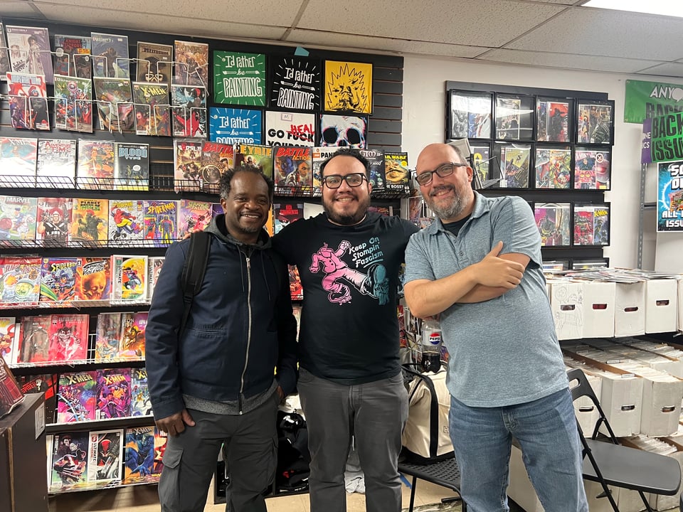 I’m indebted to my good friend Alex Segura for setting up our launch signing at the cool Anyone Comics in Brooklyn. It was great to experience that with DTP co-creator and artist, Rachel Merrill. Shout out to everyone who showed up; especially, Joe Illidge, who you should recognize in the last email blast. I’ll include the photo gallery at the end of the email.