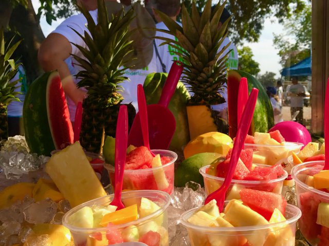 Fresh cut melon, cucumber and jicama salads with lime juice and tajin from the fruit cart street vendors
