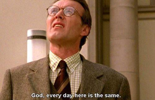 In Groundhog Day, Bill Murray can’t move on to February 3rd until he accepts that he’s in February 2nd forever, so he may as well use his unique knowledge and skills in service of others.