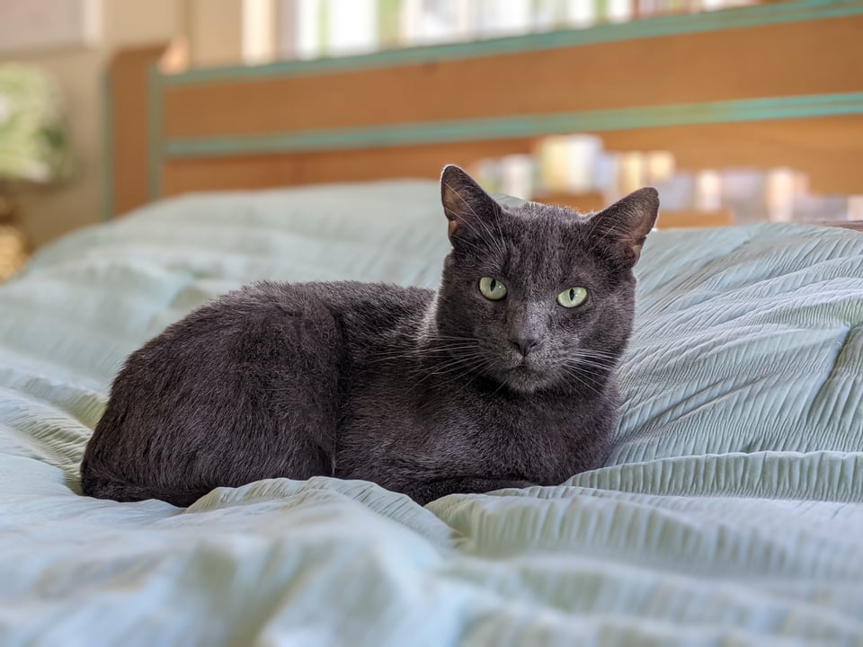 Ludo, the cat, weighs somewhere between 15 and 17 pounds. He is built like a linebacker, and when he jumps off the bed, it sounds like a sack of potatoes hitting the floor. His stern, panther-like expression belies his true cuddleslut nature; he will demand attention, especially belly rubs, from any and all guests. I’ve recently learned he is likely part Russian Blue, a breed known for their extremely affectionate personalities.