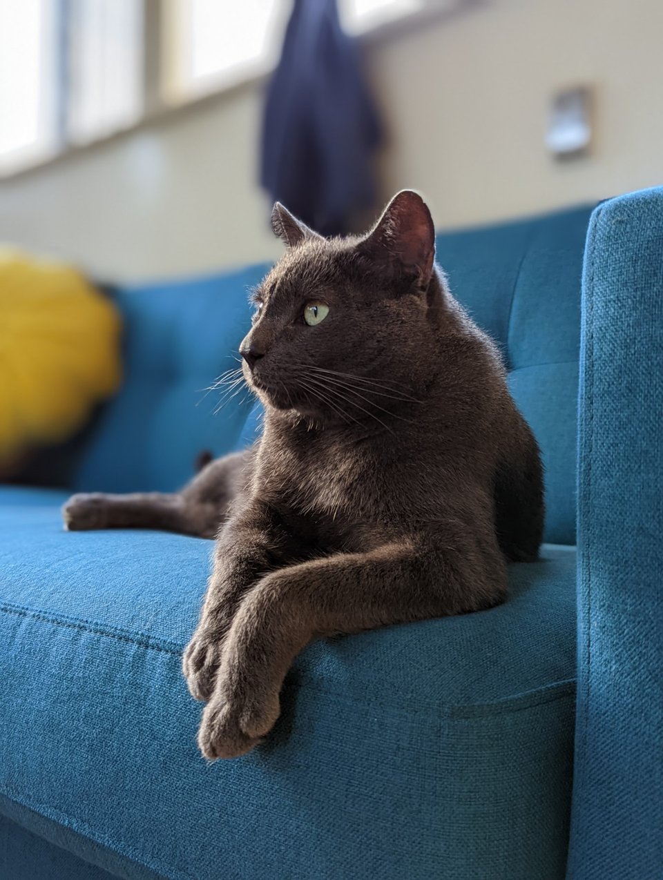 In general, the only thing he wants is to be near me. I’ve learned that this is typical of Russian Blues. He’s like a loyal dog.